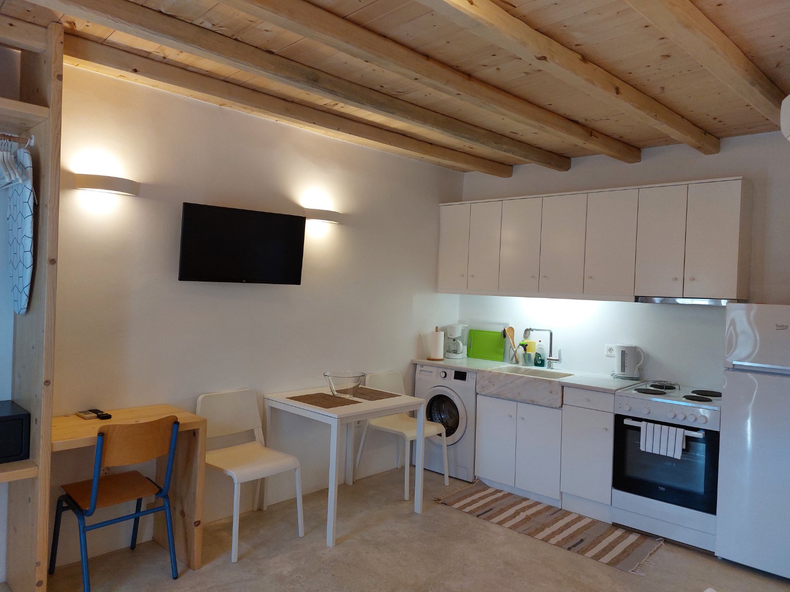 - Amenities: Air conditioning, Autonomous, Bathroom with shower and a WC, Dining table, Flat screen smart TV, Free parking, Free WiFi, Hairdryer, Refrigerator, Towels, Wardrobe or Closet, Washing machine